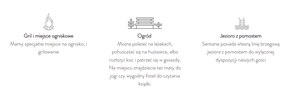 Mazury Garbate. Mazurskie Bieszczady. Polska Toskania. Niby Mazury — a jednak ciszej. Wolniej. Prawdziwiej. W 1911 roku nad jeziorem Świętajno powstała ceglana kamienica, która przed laty była hotelem, restauracją, sklepem kolonialnym, szkołą, Urzędem Gminy i Urzędem Stanu Cywilnego. Mury wiele widziały. Pierwsze spojrzenia, które zamieniały się w miłość, dziecięcy śmiech odbijający się echem po korytarzach, drżące dłonie składające podpis pod aktem małżeństwa. Przez lata chłonęły ludzkie historie — ciche marzenia i wielkie chwile — a dziś nadal zapraszają, by stać się częścią kolejnej opowieści. Dlaczego Sentane — nazwane na cześć dawnych jaćwieskich włości które się tu znajdowały— to dom nad wodą dla tych, którzy chcą zwolnić: dla kawy na pomoście, dla ciszy, dla ogniska i rozmów pod gwiazdami. Nie idealne. Nie pokazowe. Prawdziwe. Z duszą. Miejsce bliżej nieba.